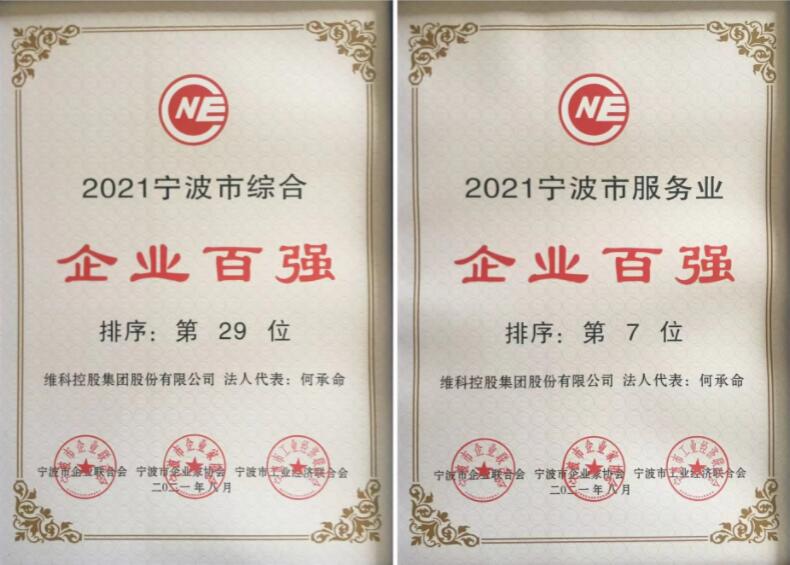 維科集團榮獲2021寧波市綜合百強企業(yè)、服務業(yè)百強企業(yè)榮譽