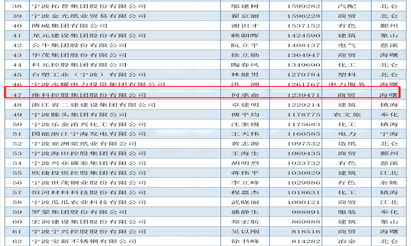 近日,寧波市企業(yè)聯(lián)合會、寧波市企業(yè)家協(xié)會、寧波市工業(yè)經(jīng)濟聯(lián)合會共同發(fā)布了2023寧波企業(yè)綜合百強榜,以及制造業(yè)、服務(wù)業(yè)、競爭力百強榜。維科集團榮獲2023寧波市綜合企業(yè)百強第47名, 2023寧波市服務(wù)業(yè)企業(yè)百強第14名,再次彰顯企業(yè)綜合實力。